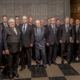 Kenraalimajuri Liikola kiinnittämässä ansioristiä toimitusjohtaja Jarmo Puputille. Juuri ansioristin saanut, hallituksen puheenjohtaja Bernt Ehrnrooth Puputin oikealla puolella (Kuva: Aki Aunala/MPKK)