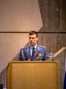 Jalkaväen vuosipäivää juhlistettiin Panssariprikaatissa 15.11.2019. Vuosipäivän juhlassa palkittiin ansioituneita kouluttajia ja katsottiin tulevaan. Kuvassa jalkaväen tarkastaja, eversti Rainer Peltoniemi.